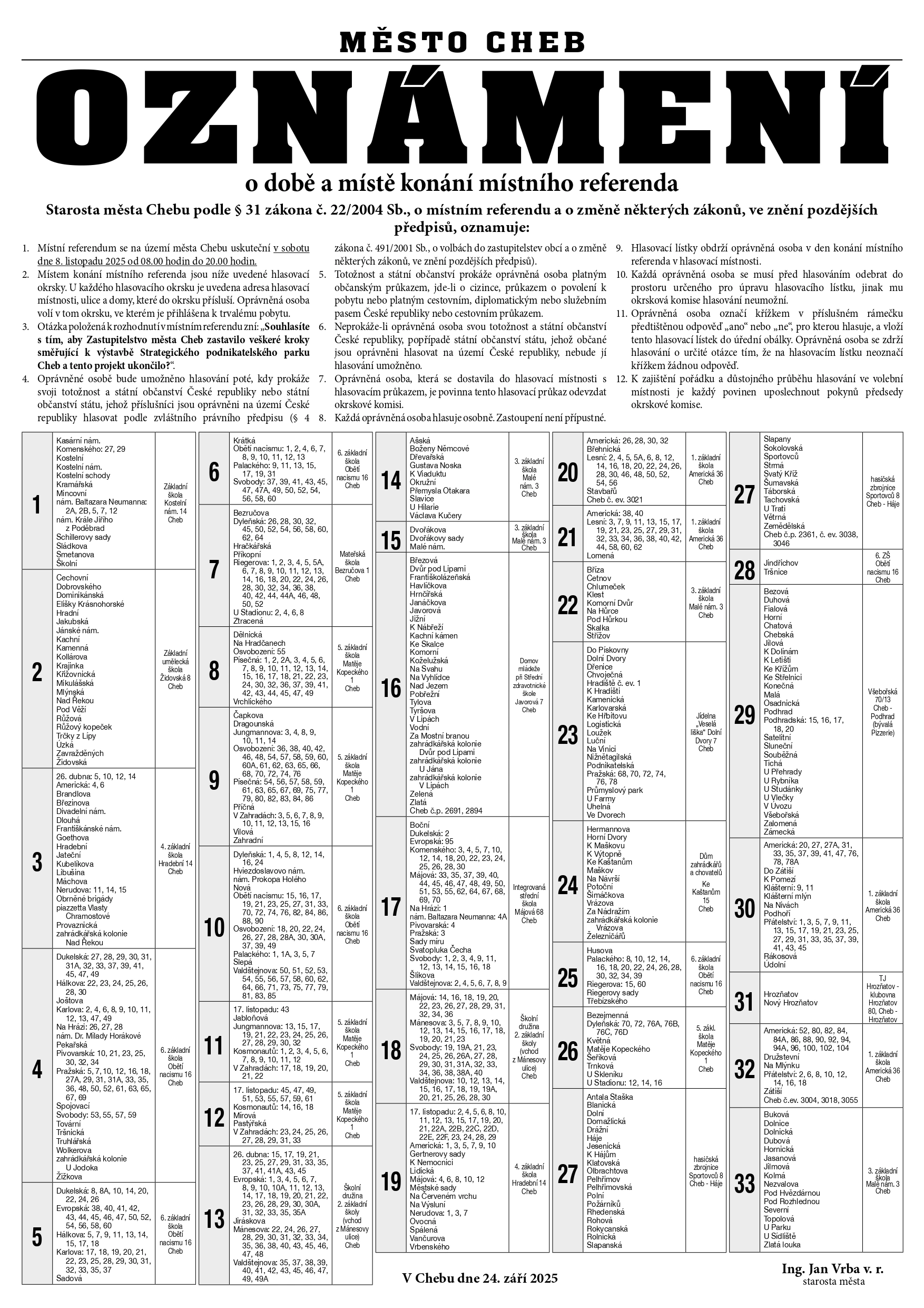 Podrobnosti včetně přehledu hlasovacích okrsků s adresami hlasovacích místností i ulicemi a domy, které do jednotlivých okrsků přísluší, najdete pod tímto článkem.