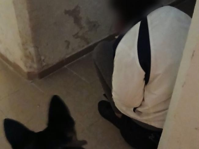 K místu byla vyslána motorizovaná hlídka strážníku a také psovod se služebním psem, kteří po příjezdu zjistili, že tři sklepní kóje nesou známky násilného vniknutí. Vizuální kontrola neodhalila přítomnost žádné osoby, ale vzhledem k tomu, že se v místnosti povaloval na zemi šroubovák a malá svítilna, použil psovod zákonnou výzvu a vyslal do rozlehlejších sklepních prostor služebního psa.