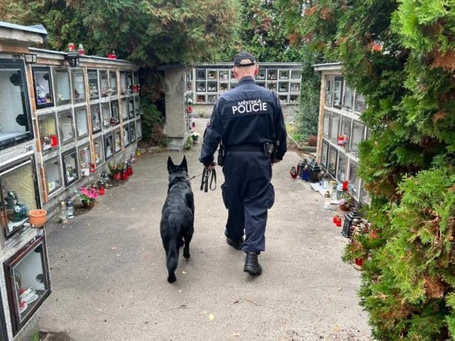 Karlovy Vary . Stejně jako v předchozích letech budou i letos karlovarští strážníci a psovodi se služebními psy provádět pravidelné kontroly hřbitovů a to ve dne i v noci. Potkávat je můžete už od 28. října, až do pondělí 3. listopadu.