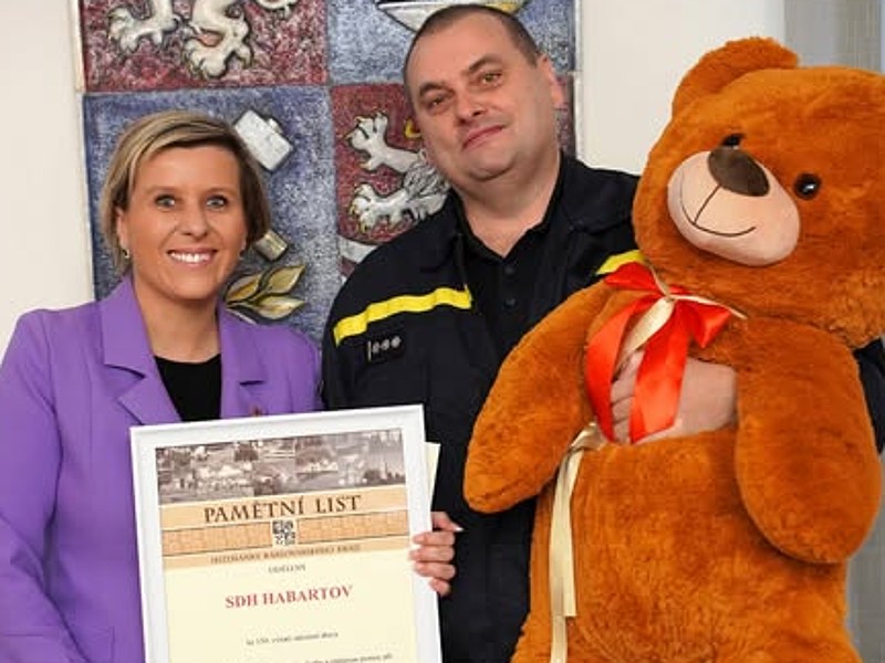 Karlovarský kraj - V pondělí převzali zástupci SDH Habartov z rukou hejtmanky Jany Mračkové Vildumetzové Pamětní list hejtmanky Karlovarského kraje.