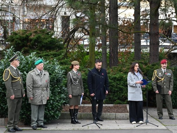 Karlovy Vary - Zástupci Armády České republiky, ozbrojených bezpečnostních složek, města Karlovy Vary, Karlovarského kraje i válečných veteránů si dnes v Karlových Varech u Pomníku obětem válek připomněli Den válečných veteránů. Ten se slaví jako připomínka příměří a konce první světové války v roce 1918.