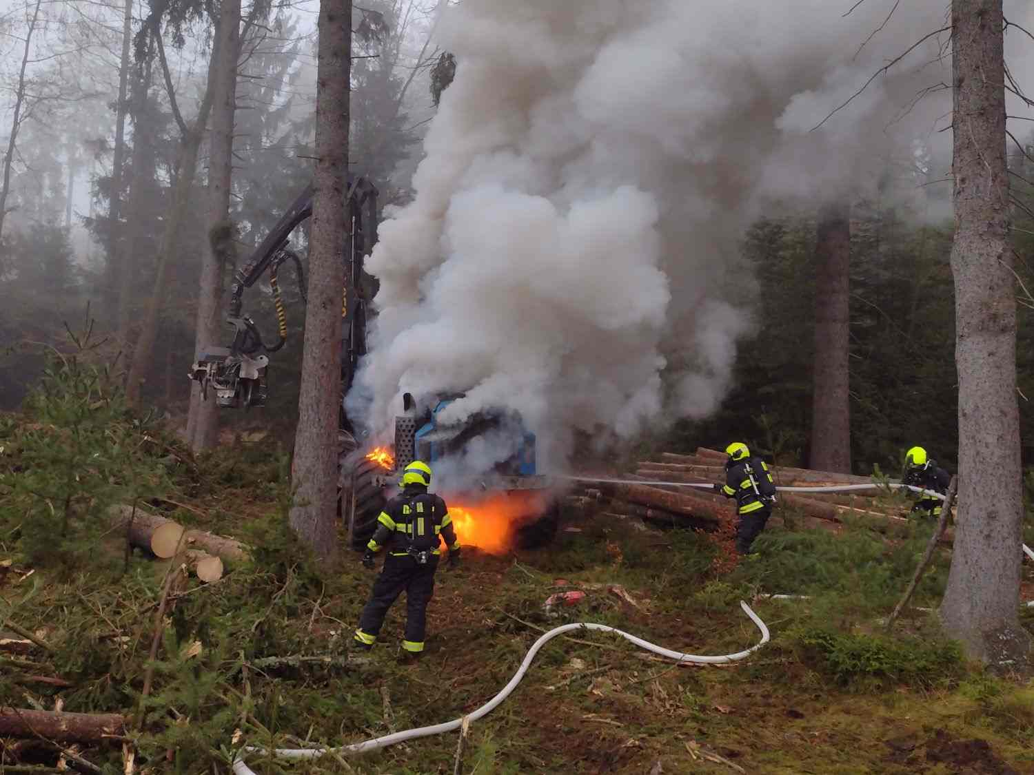 Karlovy Vary - V lese u Svatého Linhartu zasahovali včera hasiči u požáru stroje na těžbu dřeva.