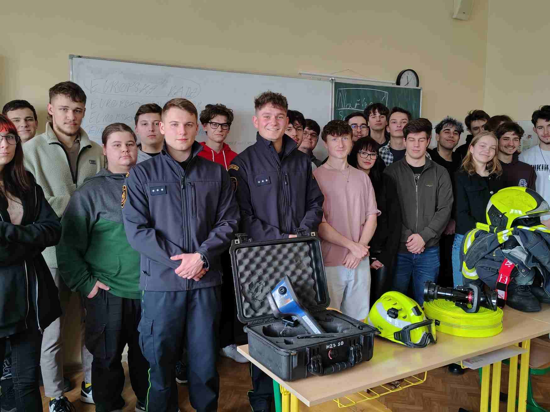 Během přednášky na téma "Možnosti uplatnění u sboru" přiblížili studentům nejen cestu ke službě, ale i skutečný život výjezdových hasičů – s jeho odpovědností, výzvami a smyslem, který tato práce přináší.
