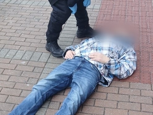Pouze o několik minut později zasahovala další hlídka strážníků v městské části Rybáře. Na ulici Sokolovská si hlídka všimla hloučku lidí naklánějících se nad mužem ležícím na chodníku, a proto okamžitě vyrazila na pomoc. Od kolemjdoucích zjistila, že muž šel po chodníku a náhle upadl na zem. Byl při vědomí a strážníkům sdělil, že pil alkohol a spolykal několik prášků. Stěžoval si na bolest hlavy a nad levým okem měl menší odřeninu. Hlídka přivolala posádku záchranné služby a ještě před jejím příjezdem provedla u muže orientační dechovou zkoušku s výsledkem 3,36 promile alkoholu. Po prvotním vyšetření záchranáři požádali strážníky o asistenci při převozu sedmapadesátiletého muže do nemocnice, který proběhl bez problémů.