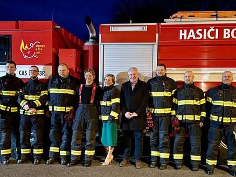 Karlovarský kraj na pořízení vozidel přispěl částkou 400 000 Kč na hasičské vozidlo Tatra 815/7 CAS 30 a 240 000 Kč na Peugeot Rifter – Senior expres.