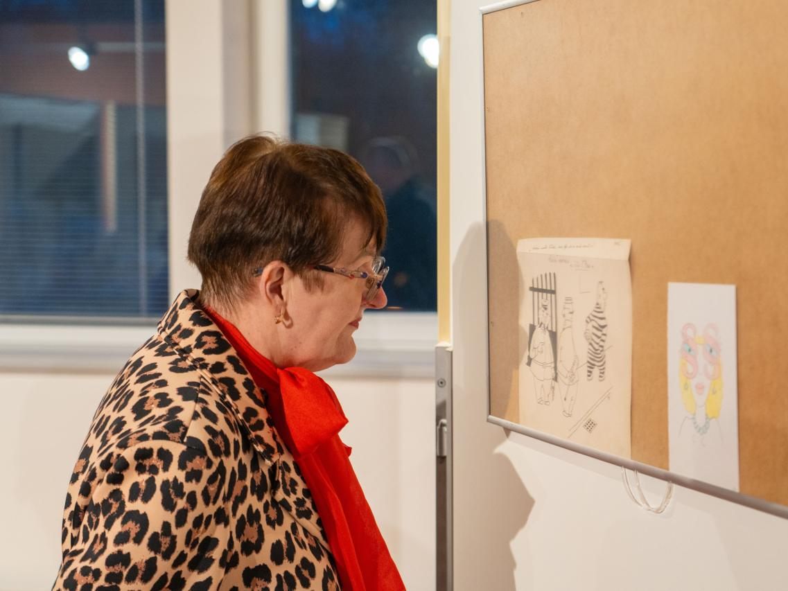 Výstava pochází ze sbírky moderátora Radka Jirgla, který ji osobně představil během vernisáže. Tu navštívil také chodovský uznávaný výtvarník Jiří Jun, jenž si s Radkem Jirglem o vystavených kresbách s chutí popovídal.