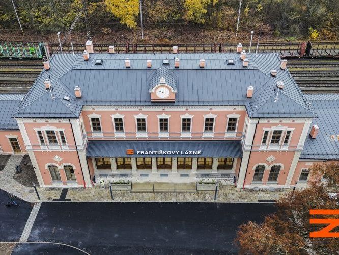 Františkovy Lázně - Cestující z oblíbených západočeských lázní už můžou naplno využívat opravené nádraží. Budově se vrátil historický vzhle, zároveň nabízí moderní prostory. Zaujme také světle růžová fasáda, která vychází z původního barevného řešení. Stavební práce probíhaly od začátku loňského roku, celkové náklady dosáhly 252 milionů korun.