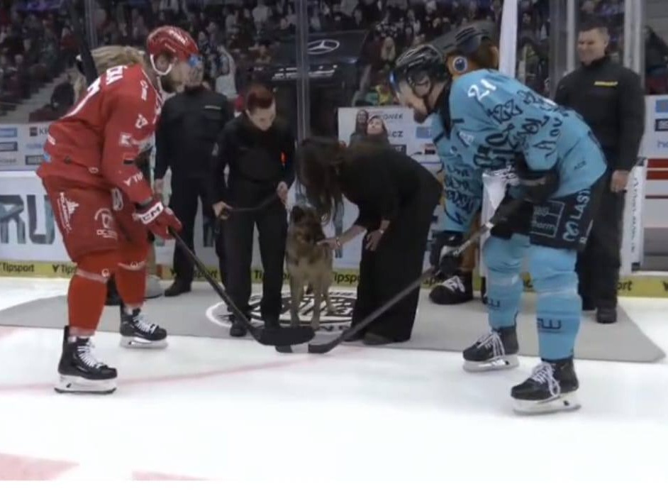 Karlovy Vary - Fenka Sanny se svojí psovodkou Janou Neuberovou z Věznice Ostrov zahájily úterní speciální zápas HC Karlovy Vary a Ocelářů Třinec pro studenty a žáky Karlovarského kraje. Atmosféra byla skvělá právě díky jejich energii a fandění.