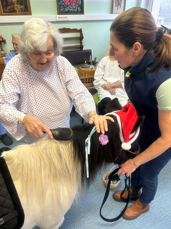 Paní Kateřina Bláhová z Hipoterapie Leon spolu s poníkem Rozárkou vykouzlily radost, úsměvy i silné emoce – nejen pacientům ale i personálu.