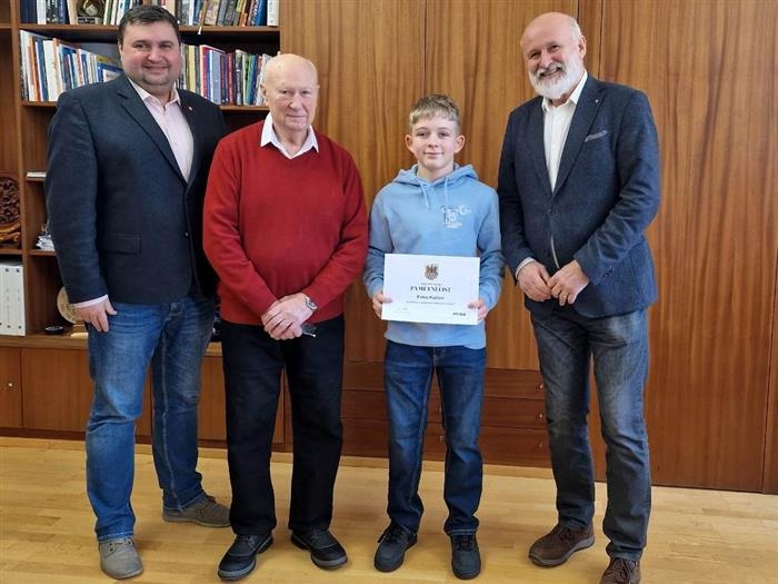 Cheb - Starosta Chebu Jan Vrba v pondělí přijal nadějného chebského vzpěrače Petra Kašu a jeho trenéra Miroslava Vrbku.